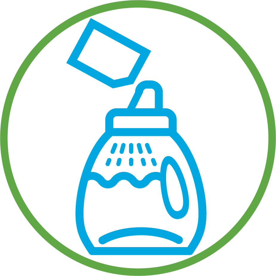 Just add water to make 1.8L of liquid detergent (65 loads). No jug, no waste – just a powerful eco-clean.